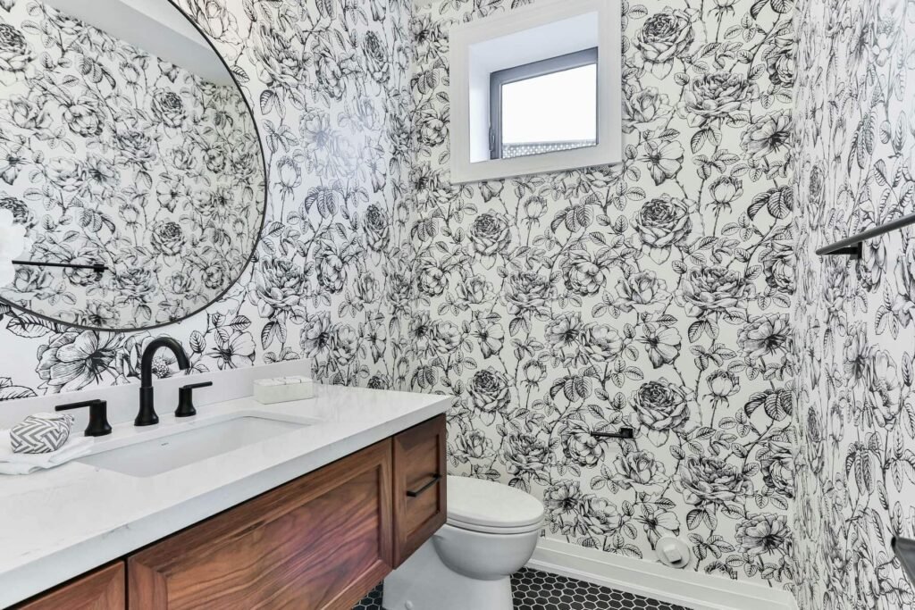 When it comes to the powder room, it’s a space in your home where you can really showcase your personality. With its small size, bold wallpaper choices that might seem too much in other rooms often work perfectly here. The beauty of adding powder room wallpaper is that it’s a low-commitment way to experiment with trends and statement looks.