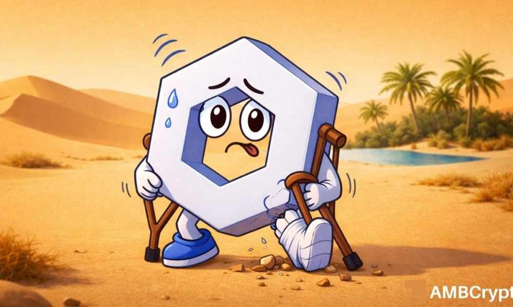 Chainlink has been stuck in a consolidation phase since dropping below the $20 level in 2025, with downside risks still looming.