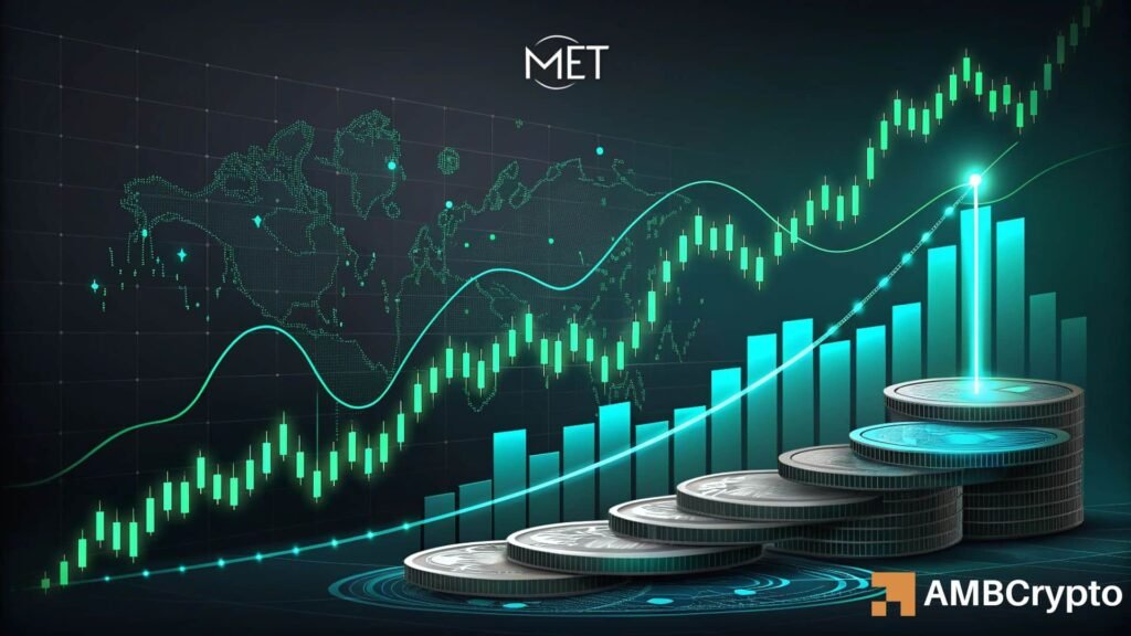 • MET’s 30% rally was supported by a 3000% surge in volume, indicating strong market interest.