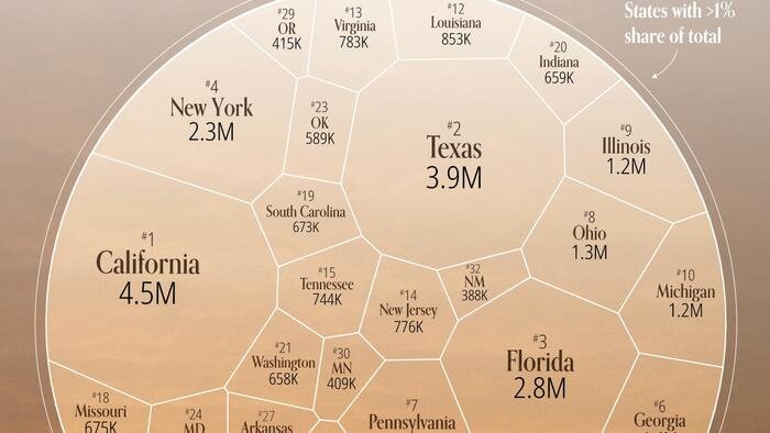 | 2 | Texas | 3,910 | 3.9M | 10.4 |